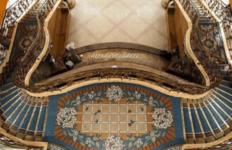 Toàn cảnh Mosaic trên cầu thang thương xá Tax cũ.