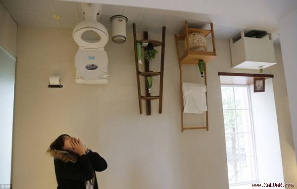 Những vật dụng treo lộn ngược khiến du khách không khỏi sợ hãi. Ngôi nhà độc đáo 3 tầng này phải mất 2 tháng để hoàn thành.