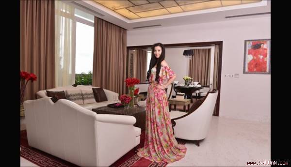 Nhà đẹp của Ngọc Trinh có diện tích 200m2, nằm trên tầng 33 của một khu căn hộ cao cấp ở quận 7, TP HCM, gần nhà ông bầu Vũ Khắc Tiệp.Tổng giá trị căn penthouse này rơi vào khoảng 20 tỷ đồng, tính cả tiền lắp đặt nội thất.
