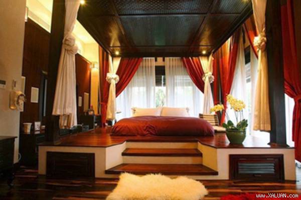 Tổng thể kiến trúc ngôi nhà là sự hòa quện giữa màu sắc và vật dụng: màu xanh của hoa lá cây cảnh,màu trắng của những bức tường, của dòng nước chảy quanh khu phòng khách, màu đỏ của ghế nệm sopha ga nệm giường, màu vàng ấm áp của ánh nến ánh đèn, màu nâu của nội thất… Chủ nhà khá tinh tế khi chọn và phối hợp hài hòa màu sắc của tất cả đồ vật trong nhà.
